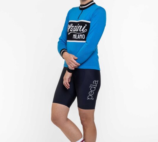 Die Azzini-Brüder gelangten während den Anfängen des Radsportes zu Beginn des 19. Jahrhunderts mit zahlreichen Siegen zu Ruhm – Grund genug, dass ihnen mit der Unione Sportiva Azzini ein Radclub gewidmet wurde, dessen klassisches Jersey in Hellblau mit einem eleganten Schriftzug eine Neuauflage verdient hat. Getreu dem Original haben wir das Azzini Long Sleeve Wool Cycling Jersey in der Wunderfaser Merino aus der Heimat der Azzinis nachproduziert, sodass es dich bei sportlichen Aktivitäten aller Art wärmt, ohne dich ins Schwitzen zu bringen. Ausserdem haben wir zwei praktische Rückentaschen aufgenäht, damit du deine wichtigsten Accessoires stets griffbereit hast. Und der Schriftzug des Jersey ist in der gleichen, seltenen Kettenstich-Technologie bestickt, wie das historische Vorbild!