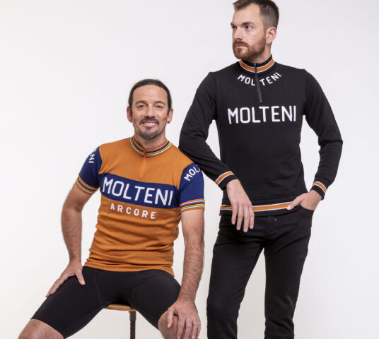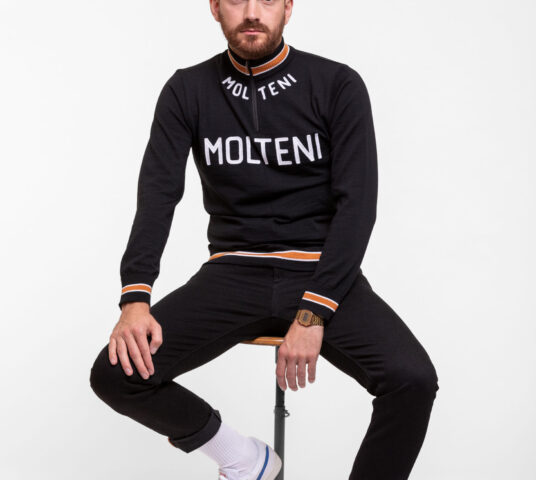 Wenn die Temperaturen sinken und du bereit für einen sportlich-historischen Auftritt, dann zieh dir unseren Molteni Black Retro Merino Wool Sweater über. Er hält nicht nur Radfahrer nach der Zieleinfahrt warm.